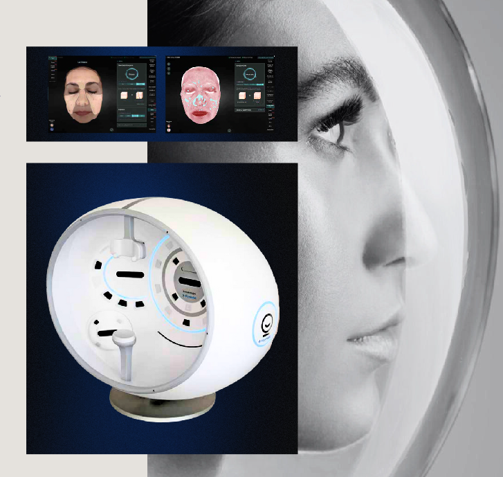 Eve V es un dispositivo revolucionario de análisis de piel con inteligencia artificial, diseñado para proporcionar diagnósticos precisos y completos en tan solo 25 segundos. Con 5 cámaras de alta resolución y 7 espectros de luz, Eve V captura más de 35 dimensiones de problemas cutáneos, ofreciendo un análisis de contorno facial en 3D que va más allá de los escáneres tradicionales de piel.